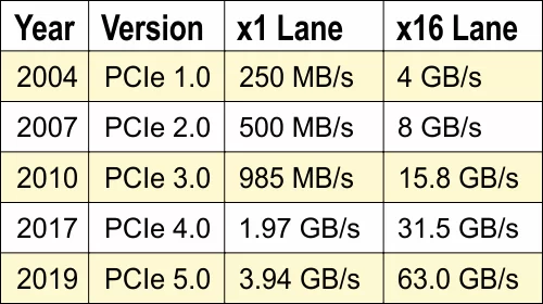 For further comparison on the various speeds offered by other lanes: x1, x4, x8 and x32, see the full version of the data chart - PCIe Speed Chart